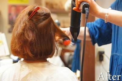 酒井雅美さん 通常、美容室では、乾かしきった髪の毛にブローすることはあまりないですが、ご家庭での再現の意味もありますので、ここからさらにブローをしてみましょう。